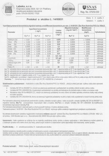Výroba: Studničné rúry sú vyrábané zo zmesi PVC, ktorá má hygienický atest pre dopravu pitnej vody.