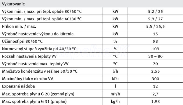 - zvýšenú účinnosť pri spaľovaní (stupeň využitia pri teplotnom spáde 40/30°C je až 109% )