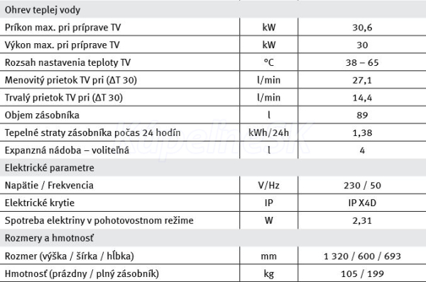 - zvýšený výkon pri príprave teplej vody (hodnoty dosahujúce až 230 litrov vody zohriatej o 35°C v priebehu 11 minút)