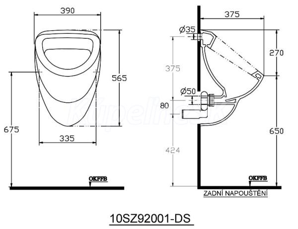 Aqualine Pisoár 39x58cm, zadné napúšťanie a zadný odpad, vrátane sifónu (2670-DS )