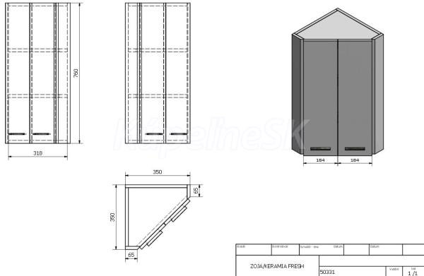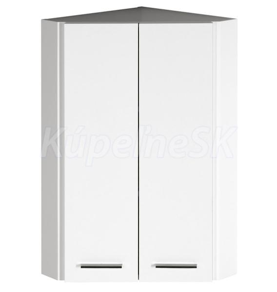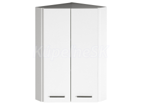 Závesná horná rohová skrinka 2x dvierka vnútri 2 drevené police chrómové úchytky Závesná horná rohová skrinka 2x dvierka vnútri 2 drevené police chrómové úchytky