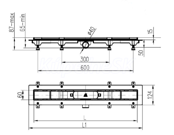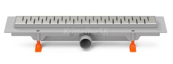 Minimálna stavebná výška je 65 mm a žľab je výškovo nastaviteľný. Pripojenie na kanalizačné