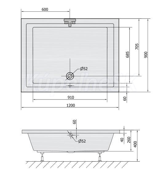 Polysan DEEP hlboká sprchová vanička obdĺžnik 120x90x26cm, biela