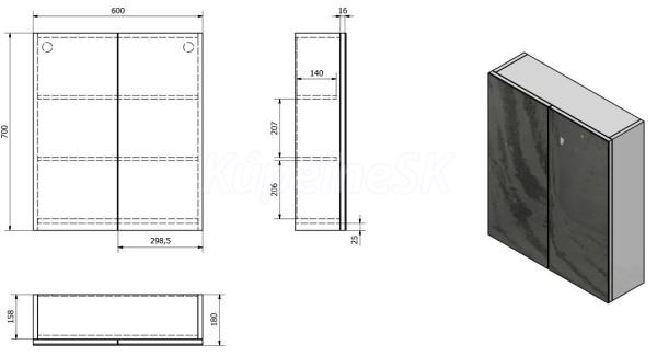Sapho VEGA galérka 60x70x18cm Galerka - zrkadlová skrinka dvojkrídlové dvierka so zrkadlom 2x nastaviteľná sklenená polica neobsahuje elektrickú zásuvku vhodná do malých kúpeľní Zrkadlová skrinka je novo dodávaná so spomaľujúcou pánty.