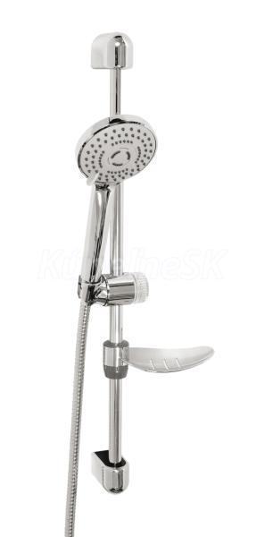kategória distribúcie Novaservis: Sprchový program | Sprchové soupravy. Súprava obsahuje 3 - polohovú sprchovú ružicu, posuvný držiak sprchy dĺžky 615mm, kovovú hadicu 150 cm a plastovú mydelničku. Balené v blistroch. Priemer tyče 18 mm. Rozstup montážnych otvorov cca 595 mm.