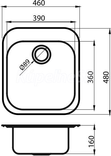 kategória distribúcie Novaservis: | Kuchyňské dřezy. Vonkajší rozmer 46,5x48,5 cm a hĺbka 16,5 cm. Kuchynský drez s prepadom. Súčasťou balenia je sifón NSP 89. 5 ročná záruka..
