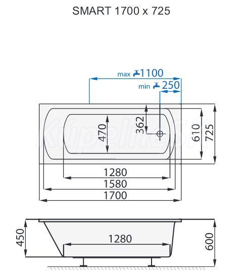 Obdĺžniková vaňa Smart je ideálny vaňou v malej kúpeľni, kde je rozhodujúci každý centimeter priestoru.