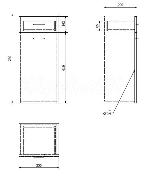 Závesná spodná skrinka 1x zásuvka výklopný kôš na bielizeň možné inštalovať s ,nožičkami, ktoré je nutné objednať samostatne Závesná spodná skrinka 1x zásuvka výklopný kôš na bielizeň možné inštalovať s ,nožičkami, ktoré je nutné objednať samostatne
