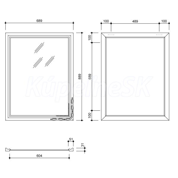 Zrkadlo v ,drevenom masívnom ráme rám s ,ozdobným vzorom otočné o ,90 ° rozmer zrkadla 600x800 mm