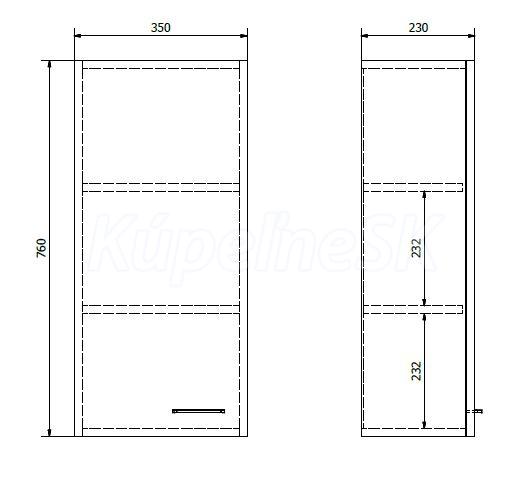 Závesná horná skrinka 1x dvierka vnútri 2 drevené police chrómová okrúhla úchytka dvierka sa môžu inštalovať s ,otváraním na pravú či ľavú stranu text-decoration: underline, Skrinka je z ,dôvodu lepšej manipulácie dodávaná v ,rozmontovanom stave (Flat pack). Inovovaná rada skriniek KERAMIA FRESH vydarene kombinuje osvedčenú kvalitu a klasický vzhľad kúpeľňových skriniek so zaobleným keramickým umývadlom ZARA. Skrinky sú závesné, ale niektoré z ,nich možno opatriť aj podpernými nohami pre jednoduchšiu inštaláciu. Séria je vyrábaná v ,bielom lesklom prevedení alebo vo svetlom drevenom dekore dub platin. Kolekciu možno kombinovať so širokou ponukou doplnkových skriniek, zrkadiel a galériek. Ceny i ,rozmery sú uvedené bez nožičiek. Nevystavujte nábytok trvalej vlhkosti a styku s ,vodou. Kúpeľňu vždy riadne odvetrajte. Pri skrúteniu korpusu skrinky môže dôjsť k poruche funkcie aretačnej mechanizmov. Proti prípadnému zatekaniu vody do skrinky použite silikónový tmel.