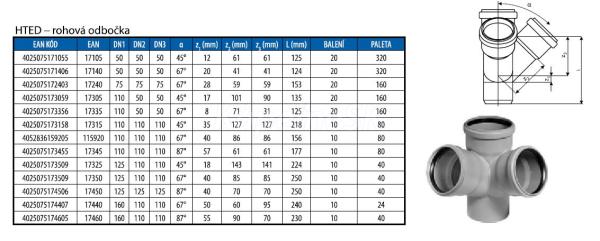 HT 50 rohová odbočka HTED 50/110/50/67°, vr. tesnenia