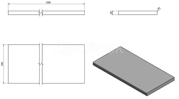ZnačkaSAPHO SériaDOSKY AVICE Rozmer190x49,5 cm Šírka1900. mm Výška50. mm Hĺbka495. mm Far