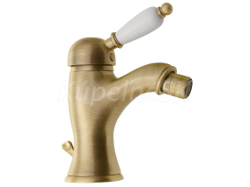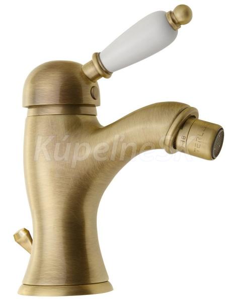 Sapho KIRKÉ WHITE stojánkova bidetová batéria s výpusťou, biela páčka, bronz