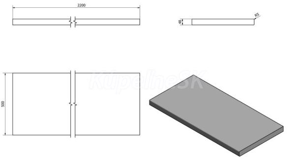 ZnačkaSAPHO SériaDOSKY AVICE Rozmer220x49,5 cm Šírka2200. mm Výška50. mm Hĺbka495. mm Far