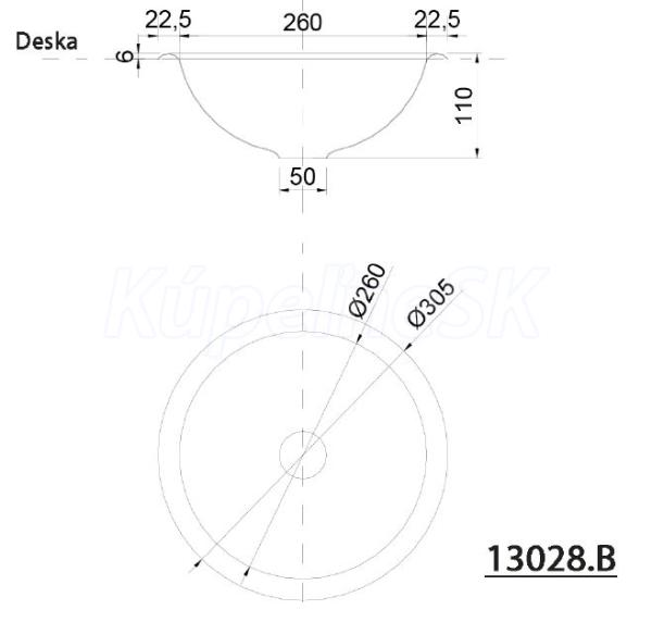 | Typ umývadla | Zápustné umývadlo |