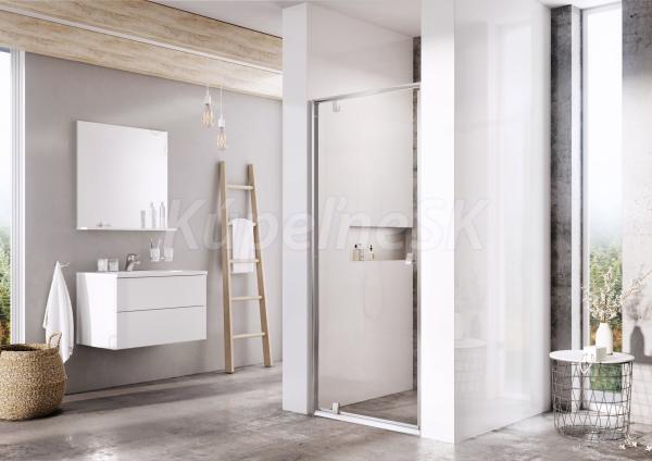 Jednodielne sprchové dvere Pivot vo vyhotovení lesklý chróm a s výplňou z číreho skla s ochrannou vrstvou Ravak AntiCalc. Otočný pivotový systém otvárania. Otočiteľný výrobok pre ľavú i pravú variantu.