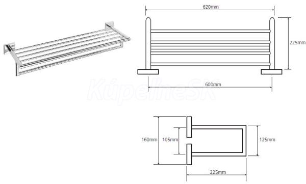 Sapho X-SQUARE polička na uteráky dvojitá s hrazdou 650x155x255mm, chróm