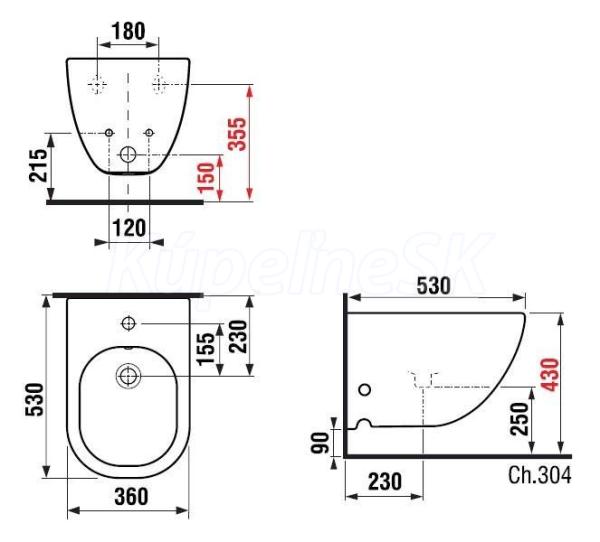 Jika MIO-N Závesný bidet s otvorom pre batériu, s bočným otv. (vr.inštal.sady), p-biela