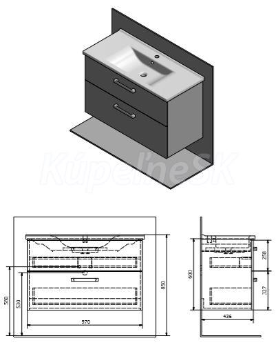 Aqualine VEGA umývadlová skrinka 100cm, 2xzásuvka, dub platin