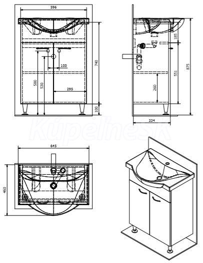 Umývadlo nie je súčasťou skrinky. Vhodný typ nájdete v ,príslušenstve. Možné inštalovať s ,nožičkami, ktoré je nutné objednať samostatne - pozri príslušenstvo.