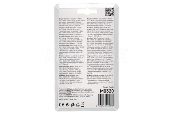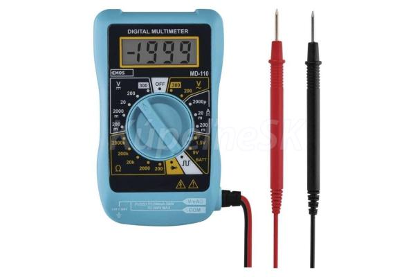 výber rozsahu: manuálny Striedavé napätie: 200 V-250 V Jednosmerné napätie: 200 mV-250 V Jednosmerný prúd: 200 µA-200 mA elektrický odpor: 200 Ohm-2 MOhm test diód: áno Test batérie: 1,5 V/9 V displej: 3,5" číslica indikácie sk