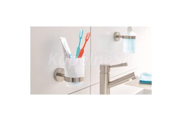 - štýlový držiak na zubné kefky, vzhľad nerezovej ocele v kombinácii so saténovým sklom