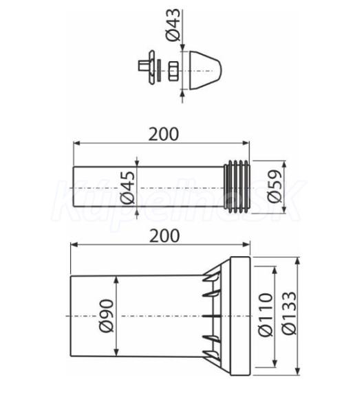 ALCA M900K-DN90 pripojovacia sada k závesnému WC – DN90, 200 mm, PE, chróm