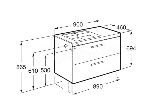 Roca PRISMA Skrinka s 2+1 zásuvkami pod umývadlo 90x46cm, lesklý antracit Roca Skrín pod umyv PRISMA
