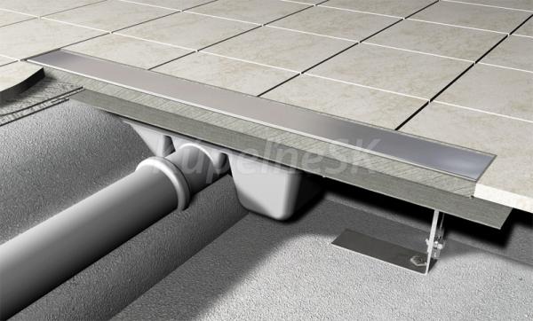 Líniový podlahový nerezový žľab pre plný rošt. Univerzálny žľab určený pre ľubovoľnú dlažbu. Minimálna hrúbka betónu 95 mm. Predpokladaná maximálna hrúbka dlažby 12 mm. Prevedenie pre silnejšie dlažby - na objednávku. Možnosť kombinovať s 2 variantmi roštov. Možnosť vybrať si rošt DESIGN lesklý alebo matný, alebo rošt POSH matný.