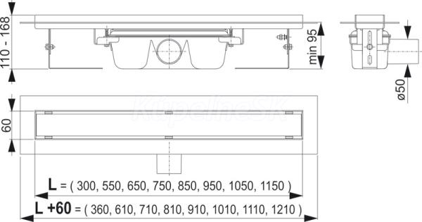 ALCA (Alca Plast / Alca Drain) Professional-Podlahový žľab s okrajom pre plný rošt APZ6-1150