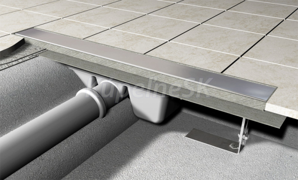 Líniový podlahový nerezový žľab pre plný rošt. Univerzálny žľab určený pre ľubovoľnú dlažbu. Minimálna hrúbka betónu 95 mm. Predpokladaná maximálna hrúbka dlažby 12 mm. Prevedenie pre silnejšie dlažby - na objednávku. Možnosť kombinovať s 2 variantmi roštov. Možnosť vybrať si rošt DESIGN lesklý alebo matný, alebo rošt POSH matný.
