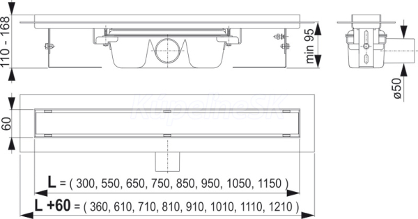 ALCA (Alca Plast / Alca Drain) Professional-Podlahový žľab s okrajom pre plný rošt APZ6-300