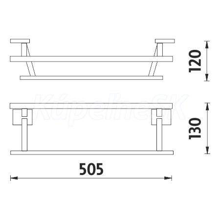Držák na ručníky dvojitý. Délka 505 mm. Vnitřní šíře pro ručníky 400 mm. Materiál mosaz / chrom.