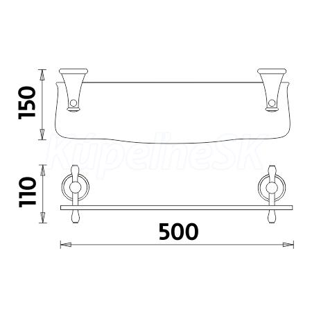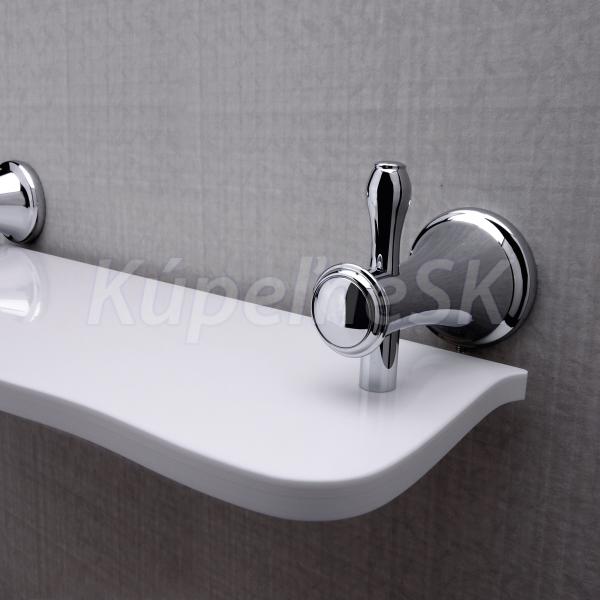 Police z bílého umělého kamene. Délka 50 cm. Úchyty mosaz s povrchovou úpravou chrom.