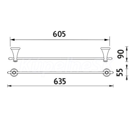 Držák na ručníky. Délka 63,5 cm. Materiál mosaz s povrchovou úpravou chrom.