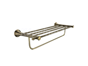 Police na ručníky s hrazdou. Vnitřní šíře pro ručníky 53 cm. Materiál mosaz / staromosaz.