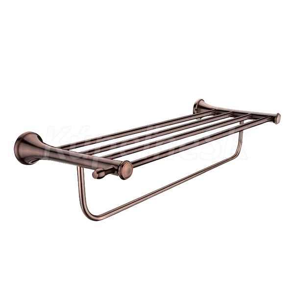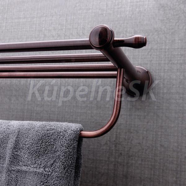 Police na ručníky s hrazdou. Vnitřní šíře pro ručníky 53 cm. Materiál mosaz / staroměď.