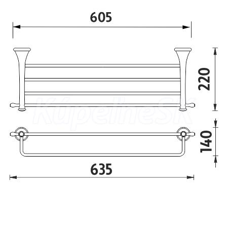 Police na ručníky s hrazdou v retro stylu, 64 cm je skvělým doplňkem do koupelny. Koupelny s dekory odkazující k časům dávno minulým a místům velmi vzdáleným příjemně doplní série Lada. Nabízí se hned v několika barevných provedeních. Povrchová úprava ve stylu starobylé mědi doplní takovou koupelnu opravdu jedinečně.  Police na ručníky s hrazdou, 64 cm. bude koupelně slušet mnohem více, pokud zvolíte i další doplňky série Lada staroměď z nabídky koupelnových a WC doplňků NIMCO.