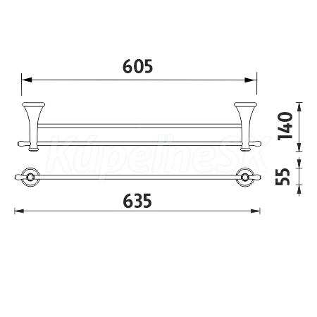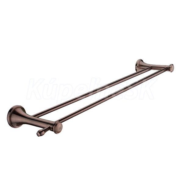 Držák na ručníky dvojitý. Délka 63,5 cm. Materiál mosaz s povrchovou úpravou staroměď.