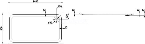 Laufen SOLUTIONS obdĺžniková sprchová vanička 140x80x4,5cm, akrylát, biela