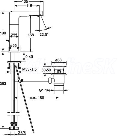 Výtok: liaty,o 150 ° otočný - vyberateľná Zarážka