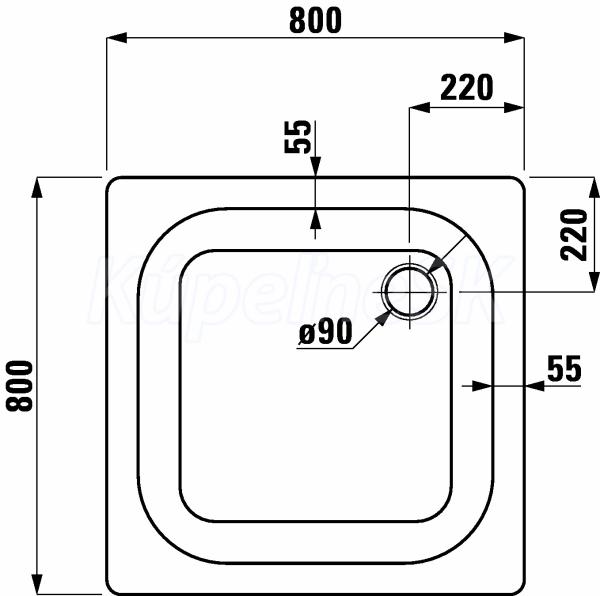 Oceľová sprchová vanička, hrúbka 3,5 mm Veľkosť 800 x800 x 65 mm 2.1501.1.000.000.1 Laufen ČTVERC.SPR.VAN.OCEL PLATINA 80 ANWH