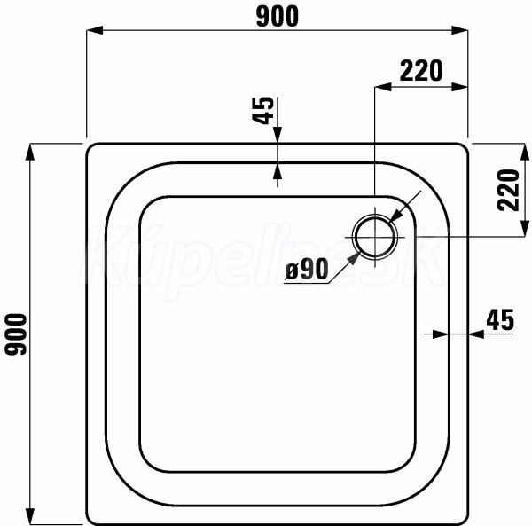 Ocelová sprchová vanička, hrúbka 3,5 mm Veľkosť 900 x900 x 25 mm 2.1500.2.000.000.1 Laufen ČTVERC.SPR.VAN.OCEL PLATINA 90 ANWH