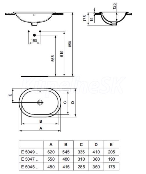 Ideal Standard E504701 CONNECT Umývadlo Zápustné Oválne 55x38 cm, prepad, Biela