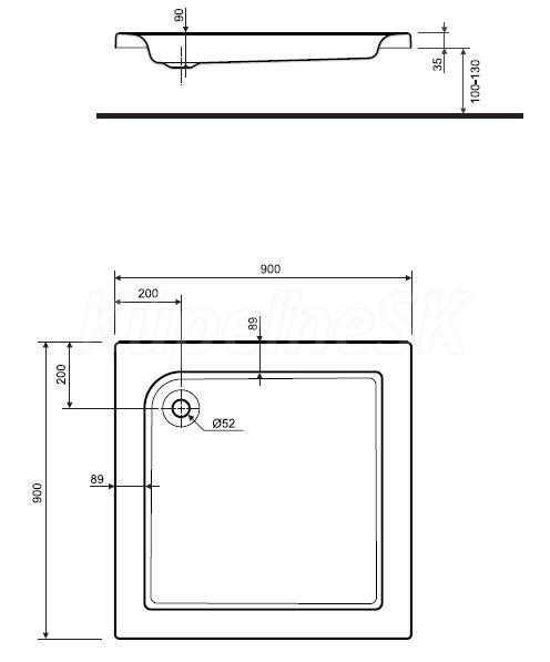 Kolo Standard Plus štvorcová vanička 90x90x9cm, hĺbka: 9 cm, odtok: 52 mm.