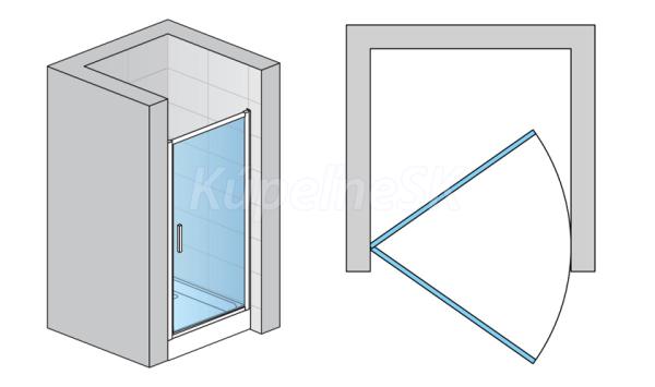 Ronal Top-Line TOPP Sprchové dvere do niky alebo k bočnej stene TOPF, jednokrídlové, 5mm číre kalené bezpečnostné sklo s mrazeným nepriehľadným povrchom v stredovej línii, otváranie dnu aj von. Plastové dieliky a držadlá v chrómovanom prevedení. Magnetické tesnenie dverí zaručujúce tesnosť dverí.
