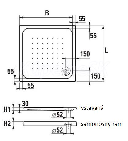 Jika sprchová vanička 90x90x8cm štvorcová samonosná akrylátová OLYMP biela Jika Sprch. van. DEEP by JIKA 90X90 bílá