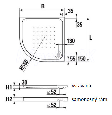 Jika sprchová vanička 90x90x8cm štvrťkruhová samonosná akrylátová OLYMP biela, rádius 55cm Jika Sprch. van. DEEP by JIKA 90X90 bílá