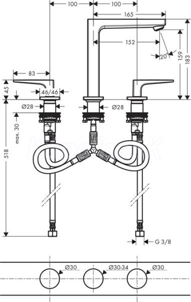 Hansgrohe 74515000 METROPOL Umývadlová 3-otvorová batéria s výpusťou, chróm