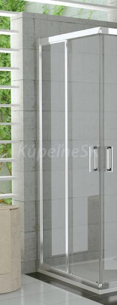 Ronal Top-Line TOPG Sprchové dvere určené na kombináciu s druhými dverami TOPD o ľubovoľnom rozmere, čím máte možnosť vytvoriť atypický rohový kút s rohovým vstupom. Dvojdielne posuvné dvere, 6mm (4mm pri pevnom diele) číre kalené bezpečnostné sklo s mrazeným nepriehľadným povrchom v stredovej línii. Plastové dieliky sú v chrómovanom prevedení. Magnetické tesnenie dverí zaručujúce tesnosť dverí.